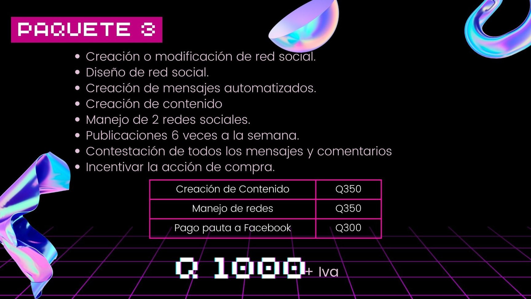 Nuestra promesa es ejecutar estrategias precisas que combinen creatividad y análisis para destacar tu marca y alcanzar el éxito en un mercado digital en constante cambio. Únete a nosotros en este emocionante viaje hacia un crecimiento digital excepcional.